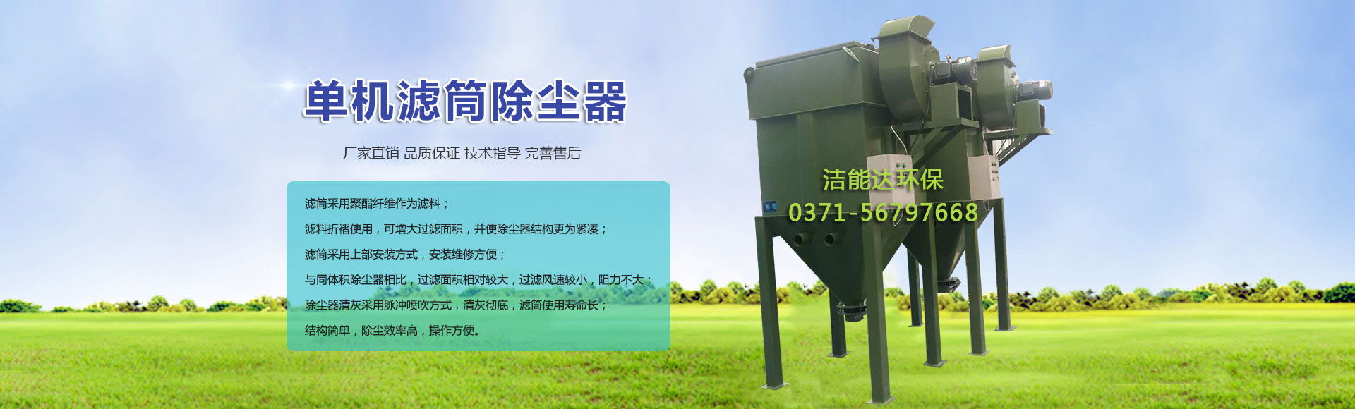 鄭州潔能達(dá)環(huán)保科技有限公司位于河南省鄭州國家高新技術(shù)產(chǎn)業(yè)開發(fā)區(qū),是一家專業(yè)從事濾筒除塵器、布袋除塵器、水膜除塵器、脈沖除塵器、多管除塵器等環(huán)保設(shè)備設(shè)計(jì)、制造、銷售、技術(shù)服務(wù)、技術(shù)咨詢?yōu)橐惑w的綜合性科技企業(yè),擁有完善的技術(shù)和完善的加工制作體系,能滿足不同客戶的需要,是河南除塵器等環(huán)保設(shè)備的生產(chǎn)廠家。企業(yè)以技術(shù)進(jìn)步、技術(shù)創(chuàng)新為主動(dòng)力,不斷開發(fā)新產(chǎn)品,擴(kuò)大企業(yè)的發(fā)展空間,形成了適應(yīng)市場需求的主導(dǎo)產(chǎn)品。如:各種系列濾筒式除塵器、各系列布袋式除塵器、除塵脫硫一體化技術(shù)、各種除塵器配件等,其產(chǎn)品適用于各行業(yè)的除塵脫硫工程,完全能滿足現(xiàn)場揚(yáng)塵、含硫設(shè)備的正常運(yùn)行和排放要求,并且運(yùn)行穩(wěn)定,效率高,維修量小,達(dá)到和滿足國家和各地方大氣污染物的排放標(biāo)準(zhǔn)要求。